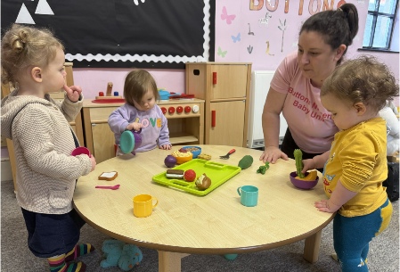 Research has shown that babies benefit from spending time with toddlers. Playing together helps to aid development as they watch and learn patterns of behaviour. We ensure that there are plenty of opportunities for this. We also have a provision that babies from 18 months old can be moved into the toddler unit if we, along with the parents/carers feel that this is suitable.