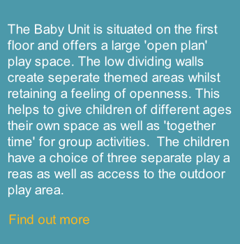 Each child has their own designated key worker who plans and co-ordinates the children’s activities throughout the day